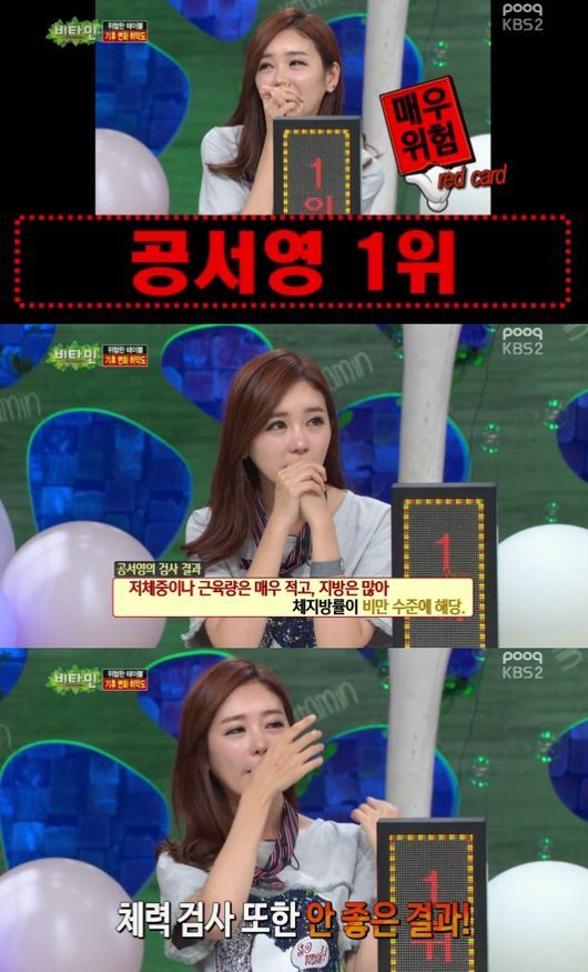 충격적인 결과에 공서영은 눈물을 보이며 "운동을 안하다 오랜만에 하면 피곤해서 일에 지장을 주니까 안하는 게 좋겠다고 생각해서 안한다"고 털어놓았다.