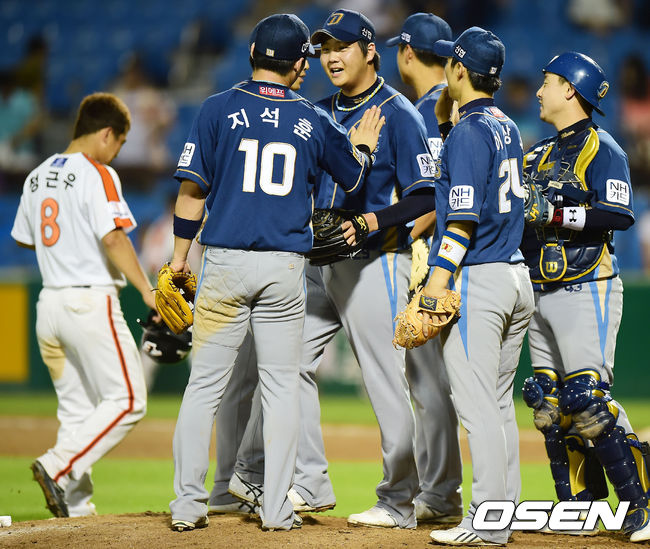경기를 마치고 NC 이민호가 동료들과 함께 기뻐하고 있다. / rumi@osen.co.kr
