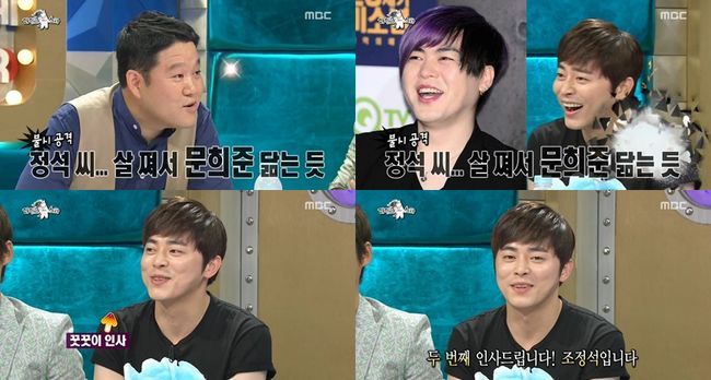 그는 이날 인사를 하기 전인 조정석의 얼굴을 본 뒤 "그런데 살이 찌니까 점점 문희준을 닮아간다"라고 말했다.