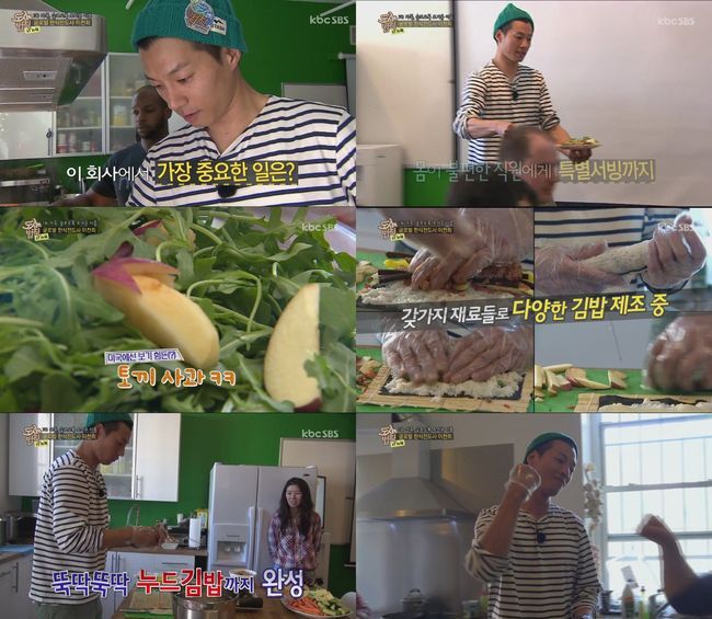 특히 이천희는 점심을 먹던 중 자신이 만든 회심의 작품 토끼 사과를 직원들에게 선보였다. "풀로 가득한 샐러드 숲 속을 자유롭게 뛰노는 토끼 사과"라고 자신 있게 설명한 이천희의 모습에 동료들은 웃음을 감추지 못했다. 이에 자신감이 붙은 이천희는 즉석에 있는 갖은 재료들로 다양한 퓨전 김밥들을 만들어 뉴요커들의 입맛을 사로잡아 글로벌 한식전도사의 면모를 보줬다.