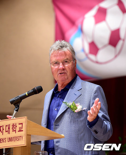 히딩크가 개막 기념식에 참석해 소감을 전하고 있다.