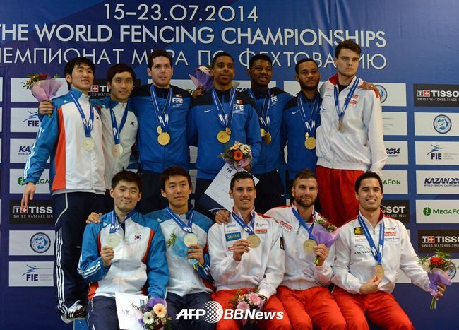 한국 남자 에페 대표팀이 2014 세계펜싱선수권대회서 사상 최고 성적인 은메달을 목에 걸었다.