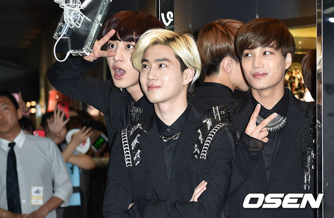 그룹 EXO-K가 360도 카메라를 보며 포토타임을 갖고 있다.