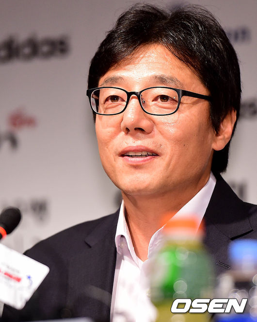 기자회견에 참석한 황선홍 감독이 취재진의 질문에 답하고 있다.