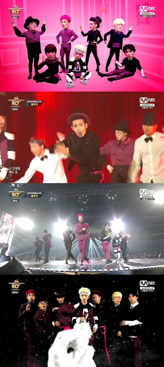 블락비는 24일 오후 6시 방송된 엠넷 '엠카운트다운' 10주년 특집에서 네 번째 미니앨범 타이틀 곡 '헐(H.E.R)'을 비롯해 수록곡 '잭팟'의 무대를 함께 꾸미며 컴백했다.