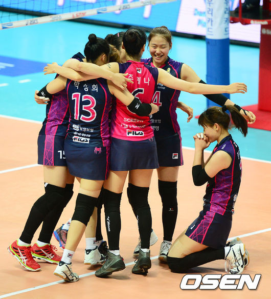 흥국생명의 신바람은 4세트서도 이어졌다. 공격과 수비 모두 현대건설에 앞섰다. 현대건설도 마지막 힘을 짜냈다. 11-14로 뒤진 상황에서 황연주와 김세영의 블로킹, 정미선의 속공, 황연주의 백어택을 묶어 15-15로 추격전을 벌였다. 하지만 거기까지였다. 흥국생명은 김혜진의 시간차 2개와 상대 범실 등을 묶어 내리 6점을 따내며 승부의 쐐기를 박았다.