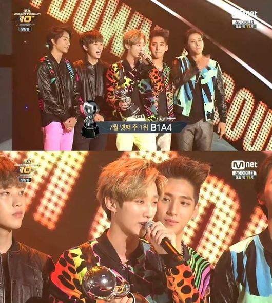 그룹 B1A4가 '엠카운트다운'에서 1위를 차지하고 감격적인 소감을 밝혔다.