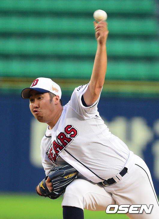 24일 오후 서울 잠실구장에서 열린 2014 한국야쿠르트 세븐 프로야구 두산 베어스와 SK 와이번스의 경기 1회초 두산 선발투수 유희관이 역투하고 있다.