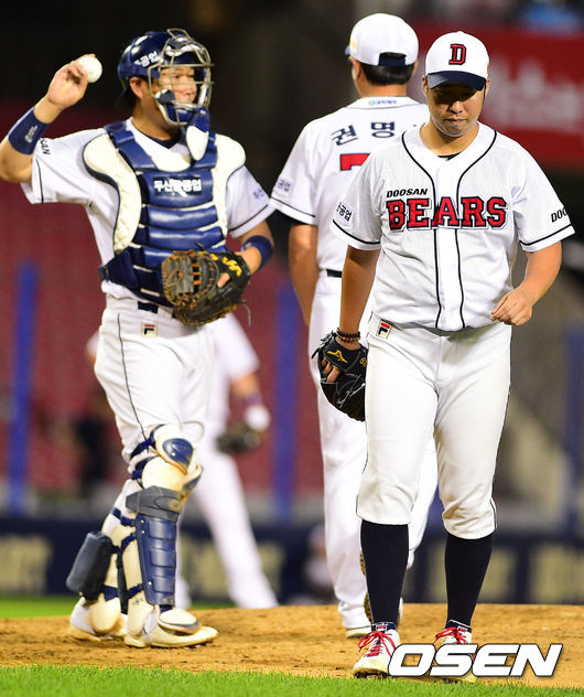 24일 오후 서울 잠실구장에서 열린 2014 한국야쿠르트 세븐 프로야구 두산 베어스와 SK 와이번스의 경기 4회초 두산 선발투수 유희관이 강판되고 있다. 유희관은 4회초 현재 3⅓이닝 4실점 기록중.
