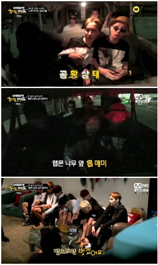 24일 오후 Mnet 예능프로그램 '방탄소년단의 아메리칸 허슬 라이프' 1회에서는 다음 앨범 작업을 위해 연수차 미국으로 떠난 방탄소년단의 이야기가 그려졌다.