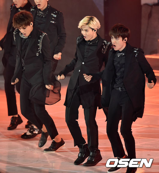 그룹 엑소 K 가 화려한 무대를 펼치고 있다.