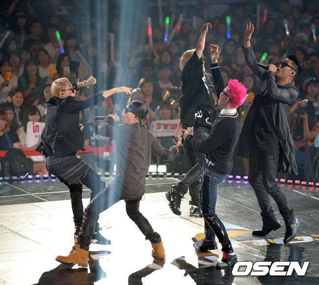 그룹 다이나믹 듀오와 블락비가 화려한 무대를 펼치고 있다.