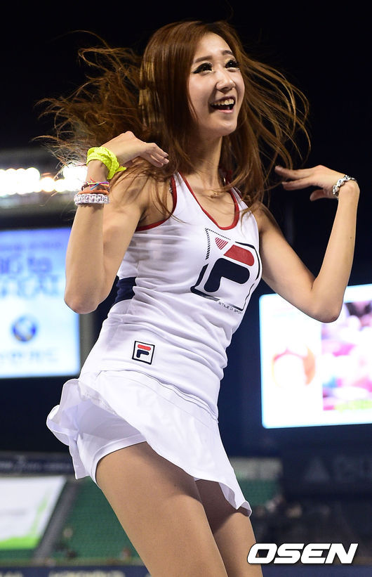 24일 오후 서울 잠실구장에서 열린 2014 한국야쿠르트 세븐 프로야구 두산 베어스와 SK 와이번스의 경기 두산 치어리더가 멋진 무대를 펼치고 있다.