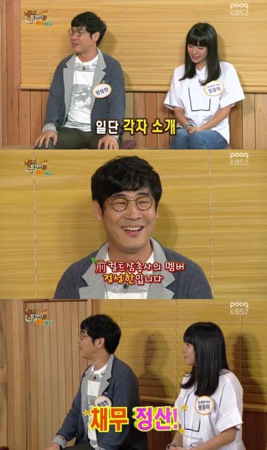 정성한과 정유미씨는 24일 오후 11시 10분 방송된 KBS 2TV '해피투게더3'에 몰래온 손님으로 등장했다.