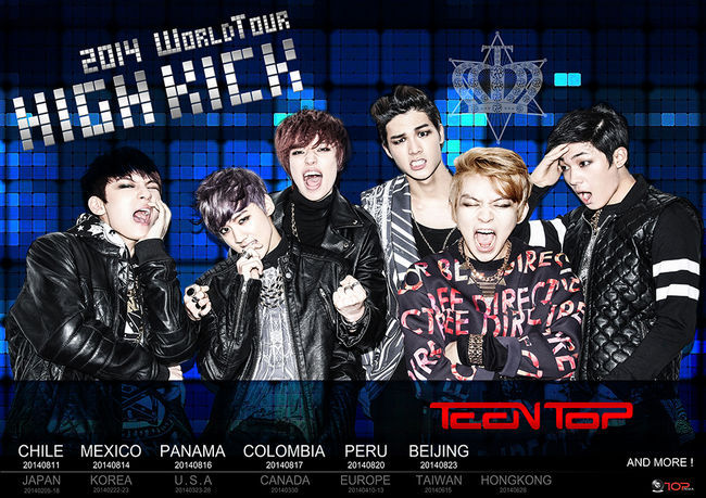 적극 반영해 칠레와 콜롬비아에서의 추가 공연을 확정하고 오는 8월 11일 칠레를 시작으로 14일 멕시코, 16일 파나마, 17일 콜롬비아 그리고 20일 페루까지 남미 5개국을 돌며 ‘틴탑 2014 월드 투어 하이킥’을 이어간다"고 설명했다.