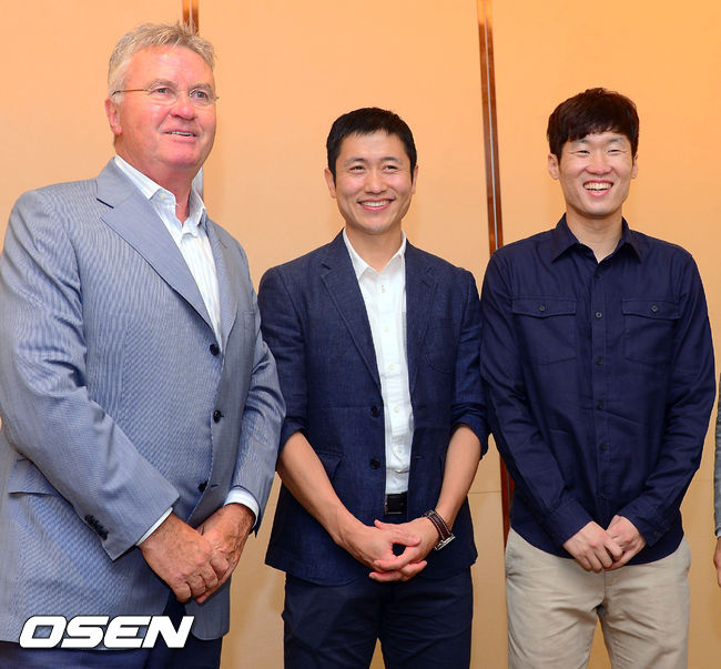 환한 미소 보이는 히딩크-이영표-박지성