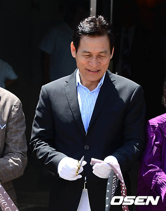 행사에 참석한 배우 안성기가 테이프 커팅을 하고 있다.