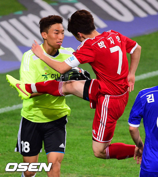 25일 오후 서울월드컵경기장에서 열린 '하나은행 K리그 올스타 with 팀 박지성' 올스타전에서 박지성이 슛 찬스를 놓치고 있다