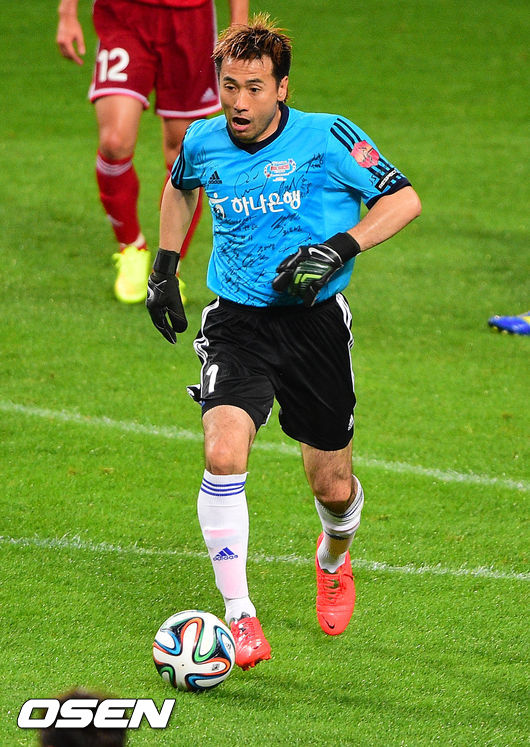 25일 오후 서울월드컵경기장에서 열린 '하나은행 K리그 올스타 with 팀 박지성' 올스타전에서 전반 김병지 골키퍼가 드리블을 하고 있다