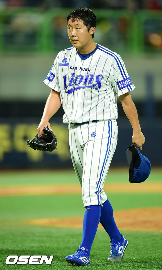 25일 오후 포항 야구장에서 열린 '2014 한국야쿠르트 세븐 프로야구' 삼성 라이온즈와 NC 다이노스의 경기, 6회초 2사 주자 1루 NC 김종호 타석때 삼성 선발 배영수가 교체되고 있다.