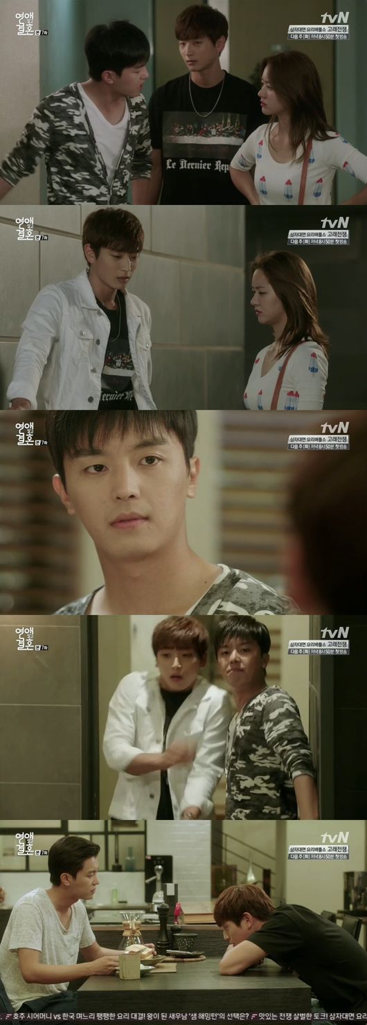 25일 오후 방송된 tvN 금토드라마 ‘연애 말고 결혼’ 7회에는 집을 잃은 한여름(정진운 분)과 그를 공기태(연우진 분)의 집에 살게 하는 주장미(한그루 분)의 모습이 그려졌다.
