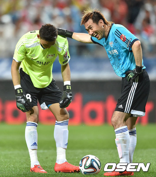 전반 김승규가 PK 주자로 나서자 김병지가 웃고 있다./sun@osen.co.kr