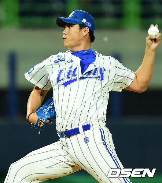 25일 오후 포항 야구장에서 열린 '2014 한국야쿠르트 세븐 프로야구' 삼성 라이온즈와 NC 다이노스의 경기, 9회초 마운드에 오른 삼성 권혁이 힘차게 공을 뿌리고 있다.