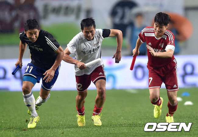 하프타임때 벌어진 릴레이 경기에서 이근호 이영표 박지성이 힘차게 스타트 하고 있다./sun@osen.co.kr