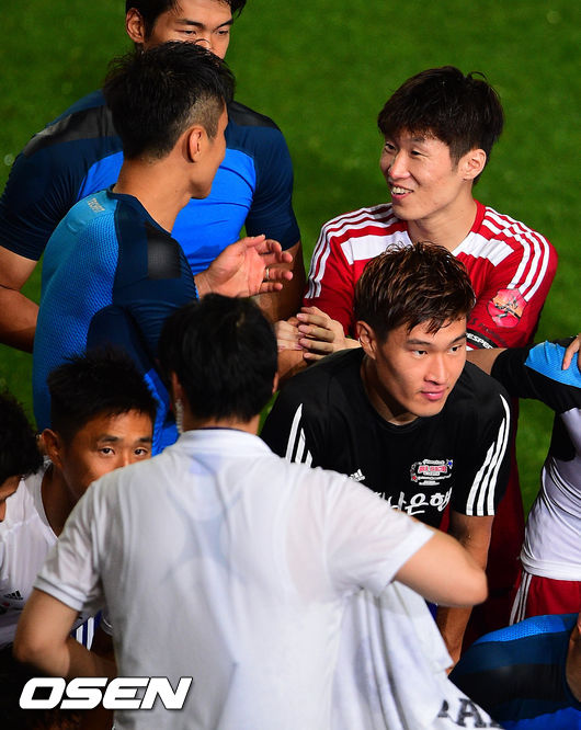 ‘하나은행 K리그 올스타 with 팀 박지성’ 경기가 25일 오후 8시 서울월드컵경기장에서 개최됐다. 국민스타 박지성(33)의 현역생활 마지막 경기로 큰 관심을 모았다. 아울러 월드컵스타 이근호, 김신욱, 김승규 등이 한자리에 모여 한 여름 밤의 축구잔치를 펼쳤다. 황선홍 포항 감독이 이끈 팀 K리그와 히딩크 감독이 지휘한 팀 박지성은 25일 오후 8시 서울월드컵경기장에서 열린 하나은행 K리그 올스타 with 팀 박지성(이하 올스타전) 경기서 6-6으로 승부를 가리지 못했다.