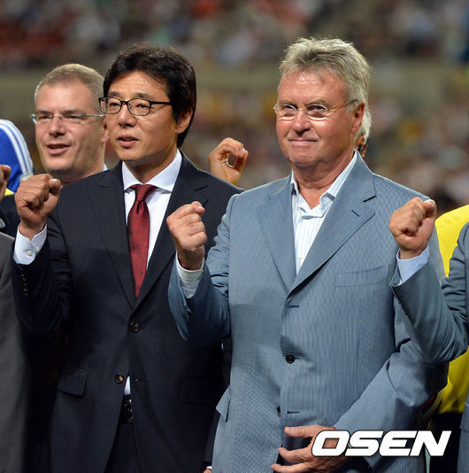 은퇴를 선언한 박지성, 이영표를 다시 영입해도 되겠다는 질문에는 “박지성, 이영표의 능력은 너무나 잘 아실 것이다. 더 이상 그 선수들의 플레이를 보지 못하는 것은 불행이다. K리그 감독을 맡으면서 그런 선수를 길러내는 것이 또 하나의 목표다. 능가하는 선수를 많이 만들도록 하겠다”며 사명감을 가졌다.