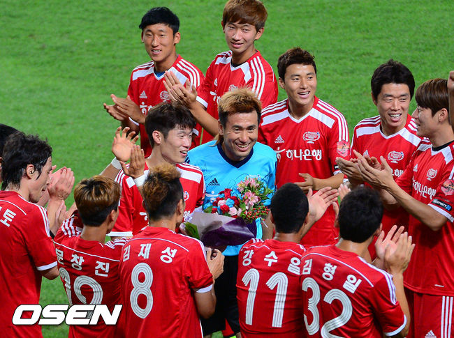 ‘하나은행 K리그 올스타 with 팀 박지성’ 경기가 25일 오후 8시 서울월드컵경기장에서 개최됐다. 국민스타 박지성(33)의 현역생활 마지막 경기로 큰 관심을 모았다. 아울러 월드컵스타 이근호, 김신욱, 김승규 등이 한자리에 모여 한 여름 밤의 축구잔치를 펼쳤다. 황선홍 포항 감독이 이끈 팀 K리그와 히딩크 감독이 지휘한 팀 박지성은 25일 오후 8시 서울월드컵경기장에서 열린 하나은행 K리그 올스타 with 팀 박지성(이하 올스타전) 경기서 6-6으로 승부를 가리지 못했다.