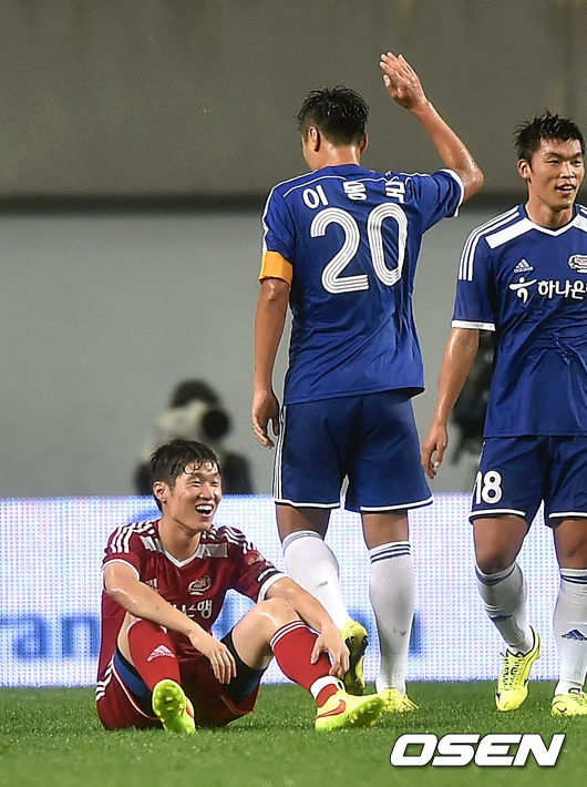 후반 박지성이 이동국의 태클에 미소를 짓고 있다. /sunday@osen.co.kr