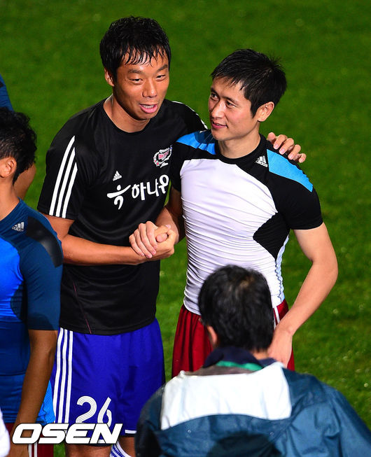 경기종료후 염기훈과 이영표가 악수를 나누고 있다. /sou1014@osen.co.kr