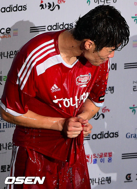 경기종료 후 박지성이 물세례로 흠뻑 젖어 있다. /sou1014@osen.co.kr