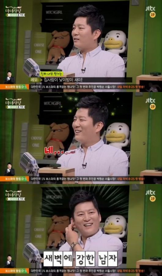 강례오는 25일 오후 방송된 JTBC 예능프로그램 '마녀사냥'에서 MC들의 질문에 "안 그래도 박선주에게 물어봤다. '나 어떠냐?'라고 했더니 '낮이밤이새이'라더라"라고 말했다.