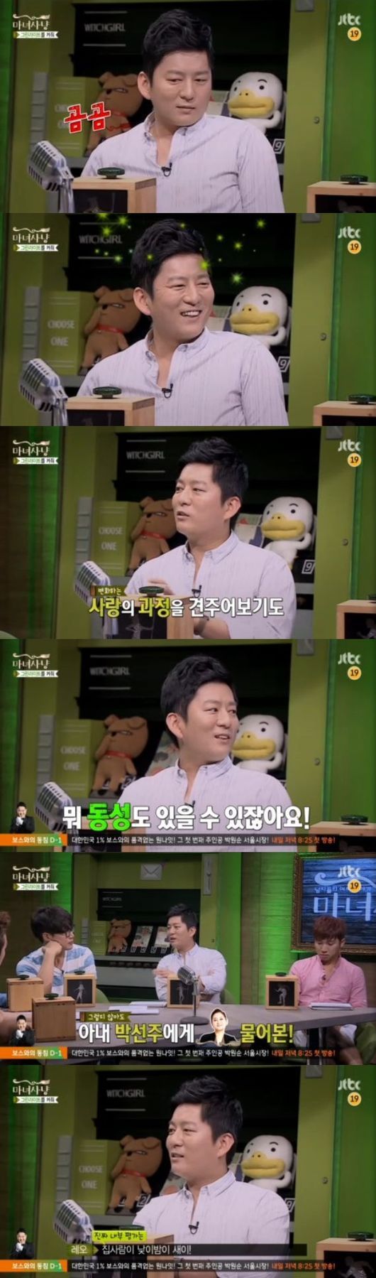 이어 그는 “주방에서 하는 얘기는 돈, 여자, 섹스다”라고 말해 MC들의 호응을 얻었다. 더불어 “여자 얘기는 섹스와 다른 건가”라는 질문에 대해 “동성도 있을 수 있지 않느냐”라고 반문하는 재치를 발휘하기도 했다.