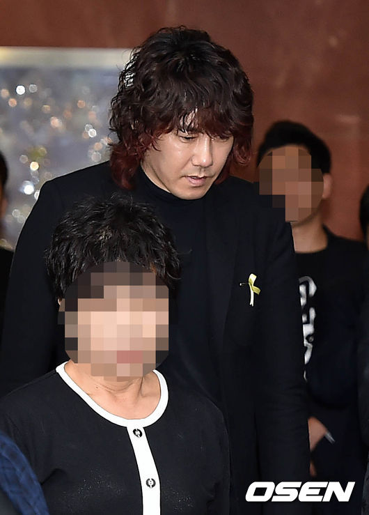 가수 김장훈이 이동 차량으로 발걸음을 옮기고 있다.