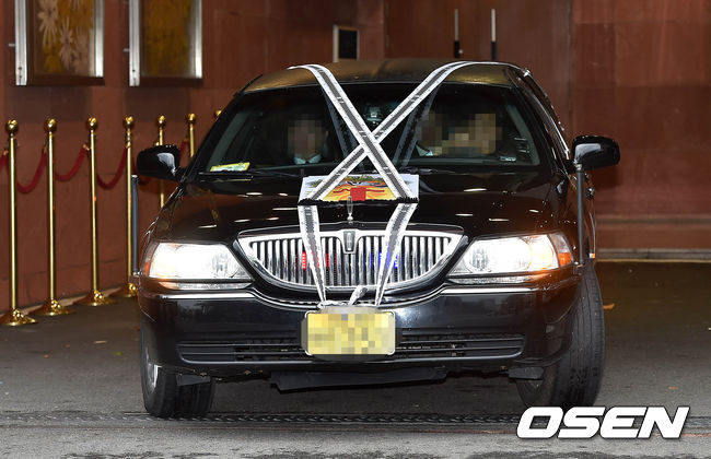 故 유채영의 운구차량이 장례식장을 나가고 있다.