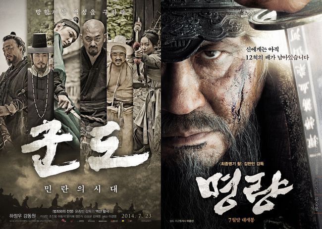실제 인물 이순신을 소재로 한 '명량'이 하정우-강동원 콤비의 조화로 인기를 끌고 있는 '군도'와의 경쟁에서 이길 수 있을까. 볼거리 많은 7-8월 극장가의 흥행 전쟁에 관객들은 즐겁다.