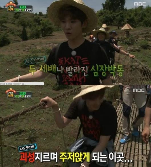 '7인의 식객' 그룹 샤이니의 키가 까마득한 높이의 구름다리 앞에서 주저앉았다.