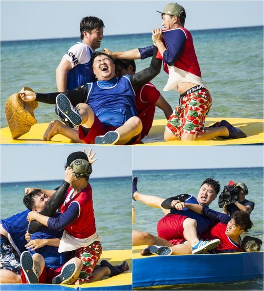 이는 망상 해수욕장에서 펼치게 된 수중 게임의 한 장면이 담긴 것. 해수욕장에 도착한 멤버들은 해변에 있는 시민들과 함께 짝을 이뤄 2대 2로 부표 위에서 상대방을 밀어내는 게임을 펼치며, 한 여름의 더위를 식혀줄 시원한 웃음을 선사할 예정이다.