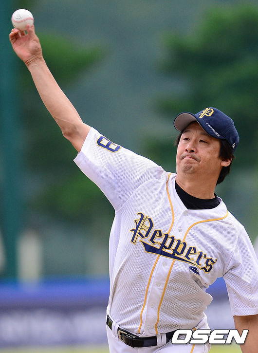 1회말 SP페퍼스 선발 투수 서성환이 힘차게 공을 던지고 있다.