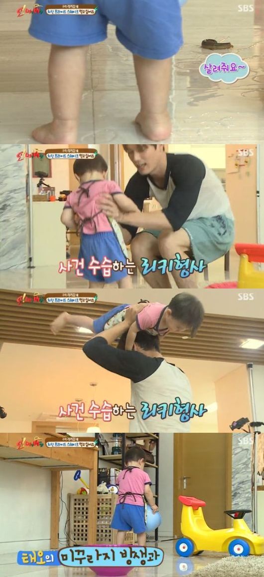 태오는 26일 오후 방송된 SBS 예능프로그램 '오 마이 베이비'에서 식용으로 구입한 미꾸라지를 들고 가다 이를 쏟아버리고 말았다.