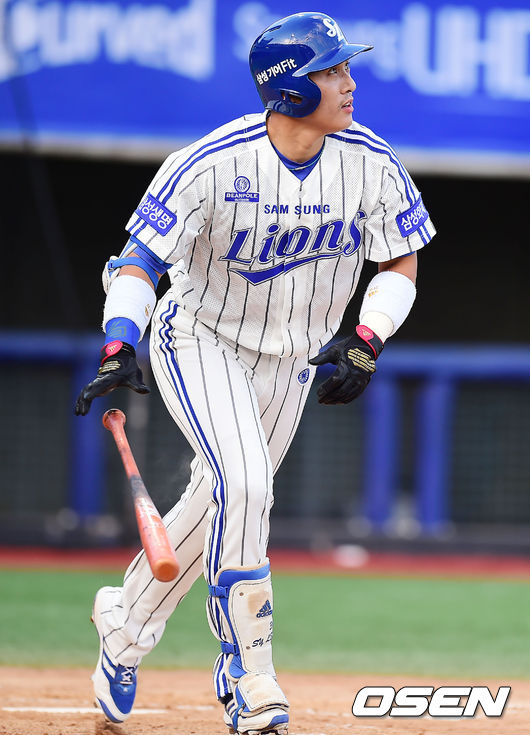 26일 오후 포항 야구장에서 열린 '2014 한국야쿠르트 세븐 프로야구' 삼성 라이온즈와 NC 다이노스의 경기, 2회말 1사 주자 없는 상황에서 삼성 이승엽이 선취 솔로홈런을 날리고 있다.