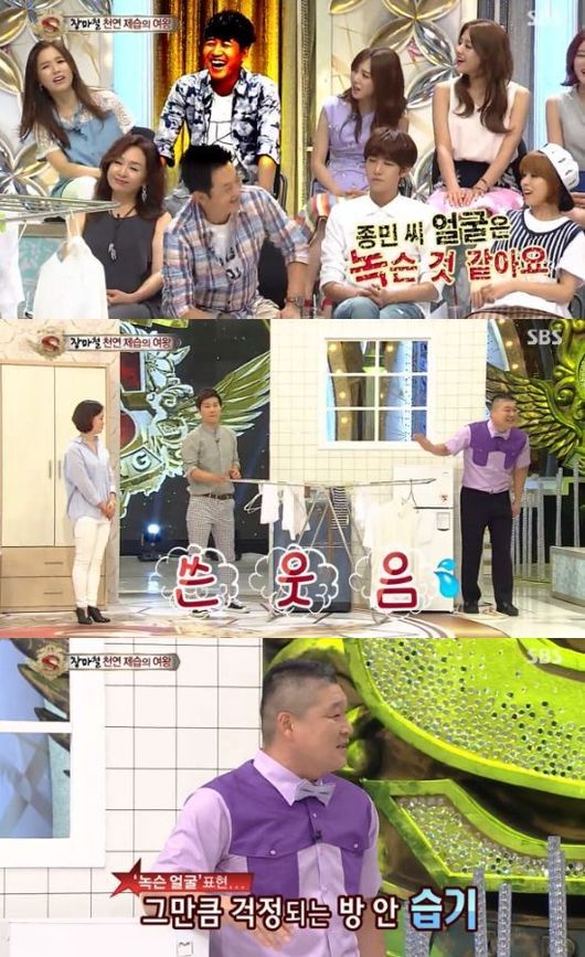 앞서 천연 제습 비결을 전수받기 위해 스튜디오에는 김종민의 방을 재현한 세트가 마련됐고, 곳곳에 곰팡이가 슬어있다는 설정이 등장하자 강호동은 이 같이 너스레를 떤 것.