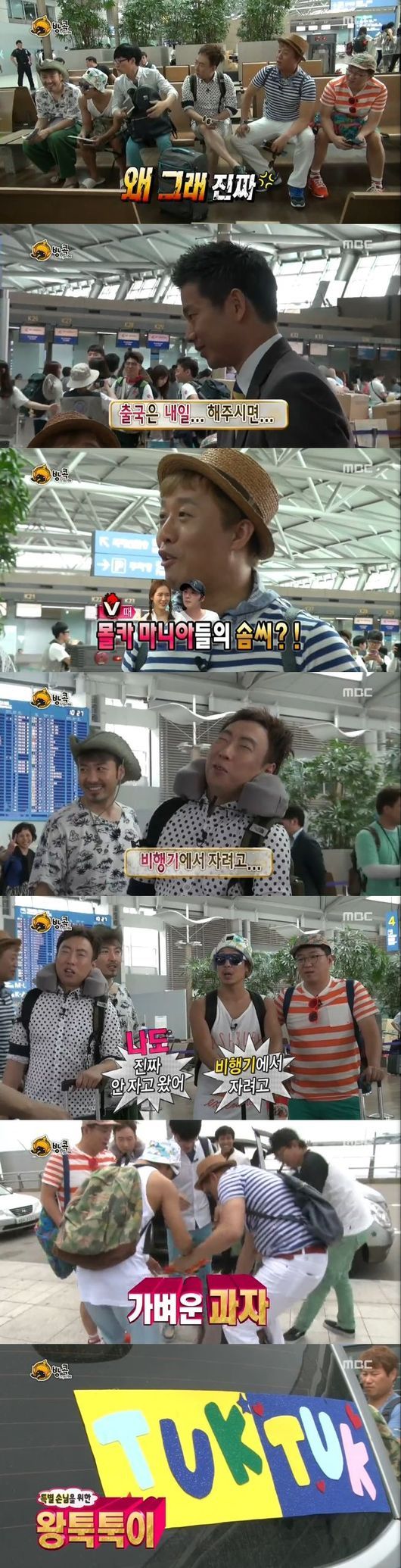 이날 멤버들은 방콕 여행을 간다는 제작진의 말에 어리둥절하면서도 기대감을 감추지 않았다. 제작진들이 실제 해외 여행을 가는 것처럼 짐을 준비해왔고 공항 직원들 역시 시치미를 뚝 떼며 연기를 했기 때문.