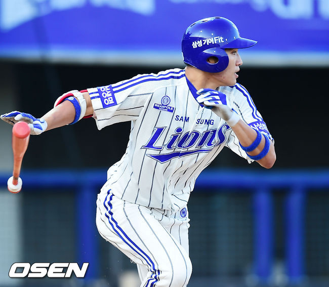 26일 오후 포항 야구장에서 열린 '2014 한국야쿠르트 세븐 프로야구' 삼성 라이온즈와 NC 다이노스의 경기, 3회말 2사 주자 2루 삼성 박해민이 좌전 1타점 적시타를 날리고 있다.