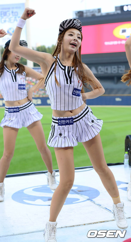 26일 오후 서울 잠실야구장에서 열린 '2014 한국야쿠르트 세븐 프로야구' LG 트윈스와 롯데 자이언츠의 경기, LG 치어리더들이 열정적인 응원 무대를 선보이고 있다.