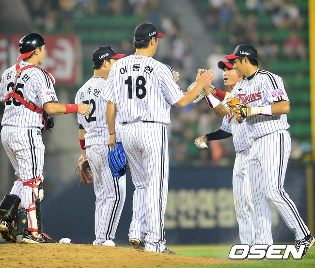 경기종료후 LG선수들이 승리의 기쁨을 나누고 있다./greenfield@osen.co.kr