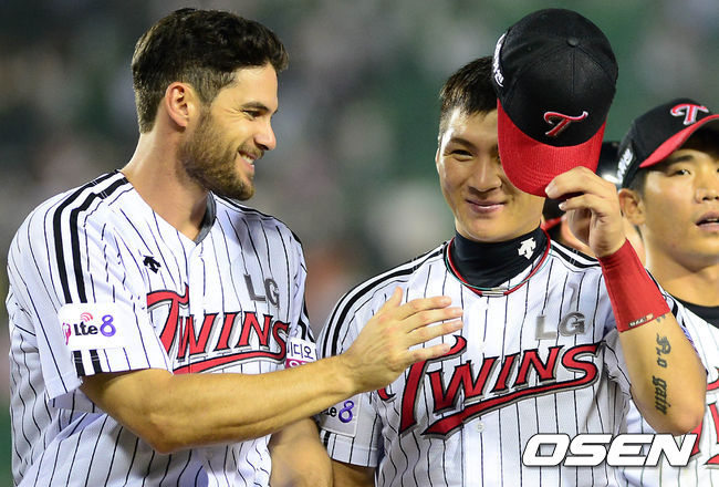 경기종료후 LG 스나이더와 오지환이 승리의 기쁨을 나누고 있다./greenfield@osen.co.kr